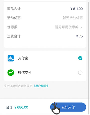 选择微信或支付宝支付后,点击立即支付按钮即可。